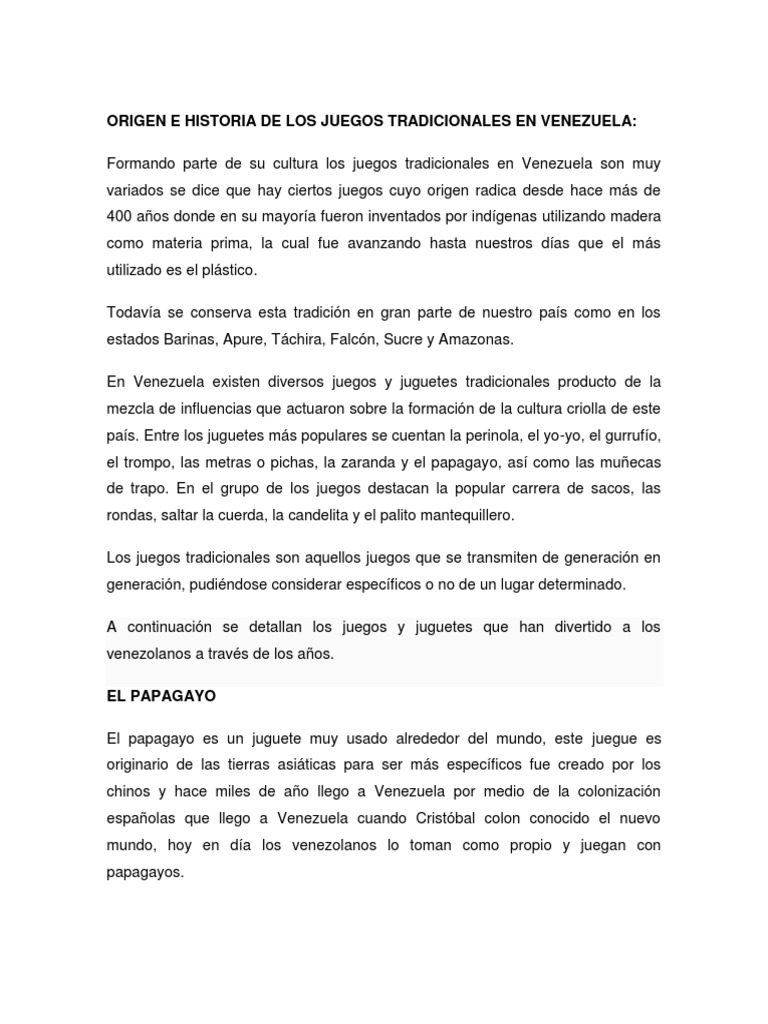 Los juegos tradicionales son los juegos infantiles clsicos o tradicionales, que se realizan con el propio en venezuela existen diversos juegos y juguetes tradicionales producto de la mezcla de.